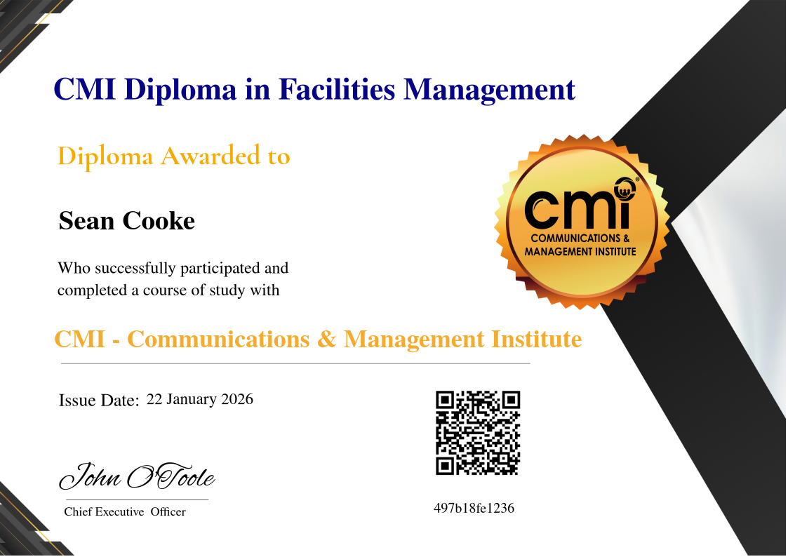 Successfully completed all modules covering Overview of Facilities Management, Facilities Management support services and Facilities Management Strategy